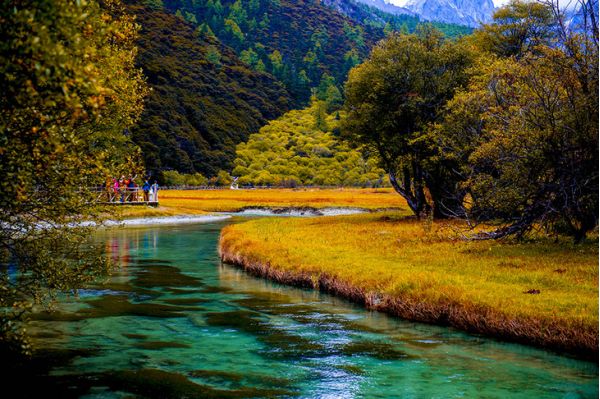 有別于色達那人工雕琢的紅,在海螺溝的那一抹自然紅石灘也是所追逐的。