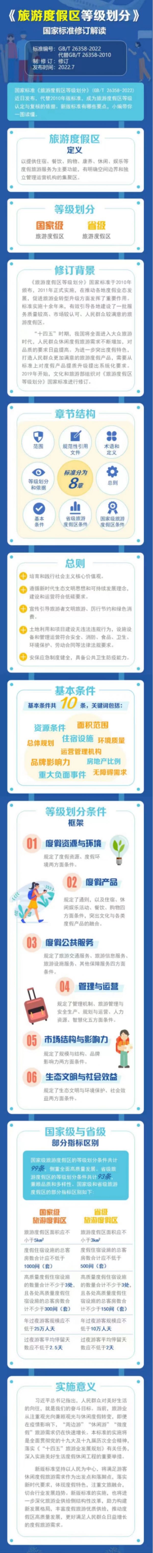 近日,文化和旅游部完成修訂《旅游度假區(qū)等級(jí)劃分》國(guó)家標(biāo)準(zhǔn)(GB/T 26358-2022)。新版標(biāo)準(zhǔn)于7月11日發(fā)布,自2023年2月1日起實(shí)施。