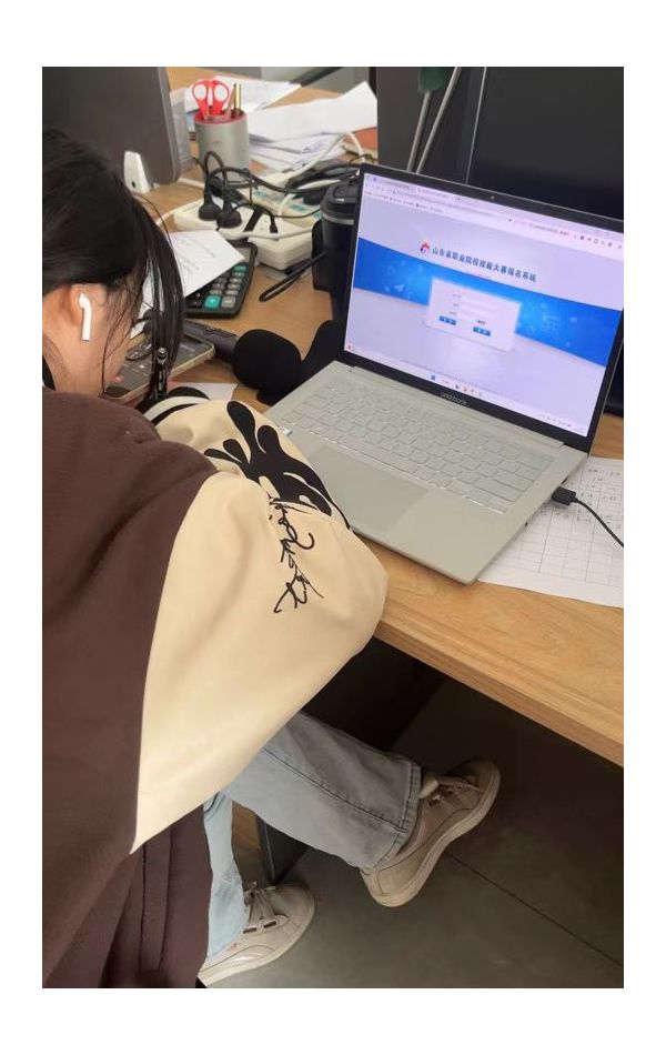 上午10:30,我們開(kāi)始系統(tǒng)報(bào)名環(huán)節(jié)。14:00,我們進(jìn)行自選導(dǎo)游詞PPT制作。在14:05,修裝網(wǎng)線(xiàn)的工作人員來(lái)到實(shí)訓(xùn)室,幫助我們完善實(shí)訓(xùn)室的環(huán)境設(shè)施。兩個(gè)小時(shí)后,我們成功裝修上網(wǎng)線(xiàn)。更加方便了我們的備賽工作。