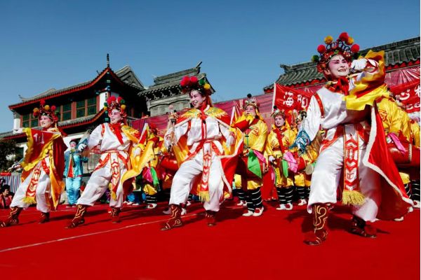 正月十五不進(jìn)城,過日來了攆出城?!闭f明秧歌當(dāng)時(shí)已成為慶賀節(jié)日不可少的活動(dòng)內(nèi)容,而鳳城已是四鄉(xiāng)秧歌的活動(dòng)中心。海陽秧歌得以逐步發(fā)展、日趨成熟,重要因素之一是它能不斷地吸收各種外來藝術(shù)的精華,如乾隆三十五年海陽柳樹莊人陳英弼編寫的秧歌劇《陳老喜勸子跑四川》序中所述:“余隨胡公廷章供職邛州,甚愛蜀歌之美,仿做'跑四川'。教秧歌班演唱”。由此可見,早在二百多年前,海陽秧歌的音樂唱腔就已經(jīng)借鑒蜀歌了。另外,海陽秧歌中"樂大夫"俗有“螳螂門”、“八卦門”之分,即是指他的舞蹈基本動(dòng)作汲取了不同拳術(shù)套路而形成各自的風(fēng)格。