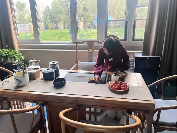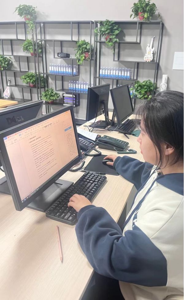 李鑫諾在上午通讀了兩個英語并對苗苗和倚晴提出修改建議,她們對英語進行修改。