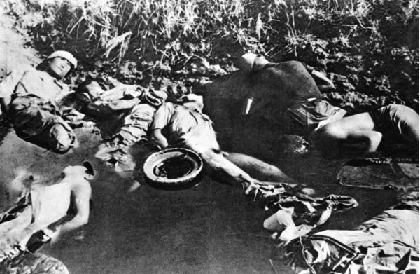 圖為在南京大屠殺中,日軍把無辜的中國人反綁雙臂槍殺后,擲入城郊池塘。新華社發(fā)
