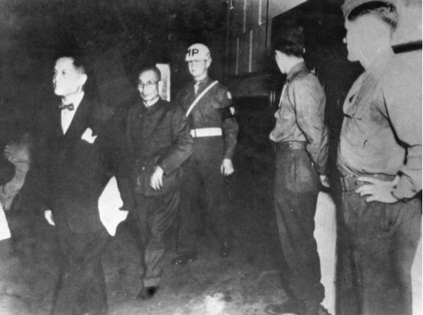 這是當年在南京制造大屠殺的主犯華中派遣軍司令松井石根(左二)被處決。新華社發(fā)