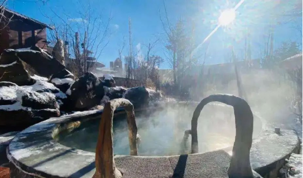 晚上在酒店愜意的泡在溫泉里,