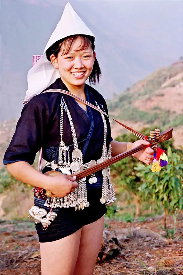 紅河縣哈尼族奕車支系獨有的“奕車服飾”至今已有千余年的歷史?!稗溶嚪棥碧攸c是緊臀、超短、露臍、無褲腰。以黑白相配為主調(diào),對比強烈、白色的帽子、銀飾,黑色的衣服、褲子,一眼望去極為醒目,充分體現(xiàn)了哈尼族奕車人簡潔、熱情奔放的民族個性特征。