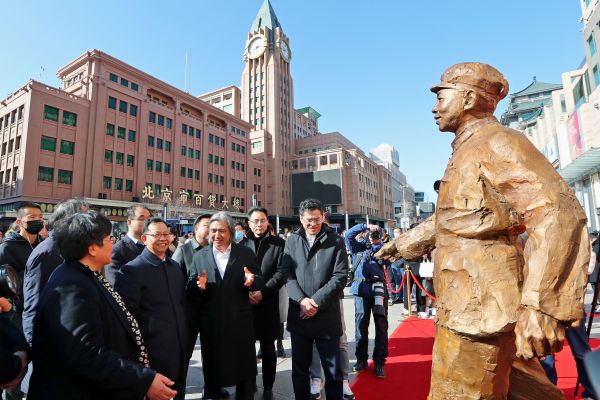3月1日,由中國美術館、北京市東城區(qū)委、東城區(qū)人民政府共同主辦的“把雷鋒精神代代傳承下去—紀念毛澤東等老一輩革命家為雷鋒同志題詞六十周年”活動在北京王府井步行街舉行?;顒蝇F(xiàn)場,全國政協(xié)常委、民盟中央副主席、中國美術館館長、中國美協(xié)副主席吳為山與東城區(qū)委書記孫新軍共同為雷鋒同志銅像揭幕。