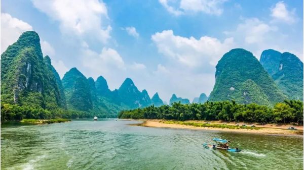 桂林山水甲天下,陽(yáng)朔山水甲桂林。百里漓江、百里畫(huà)廊,兩岸山峰清秀迤邐,連綿起伏,形態(tài)萬(wàn)千。水如同綠色的翡翠,清澈透亮。