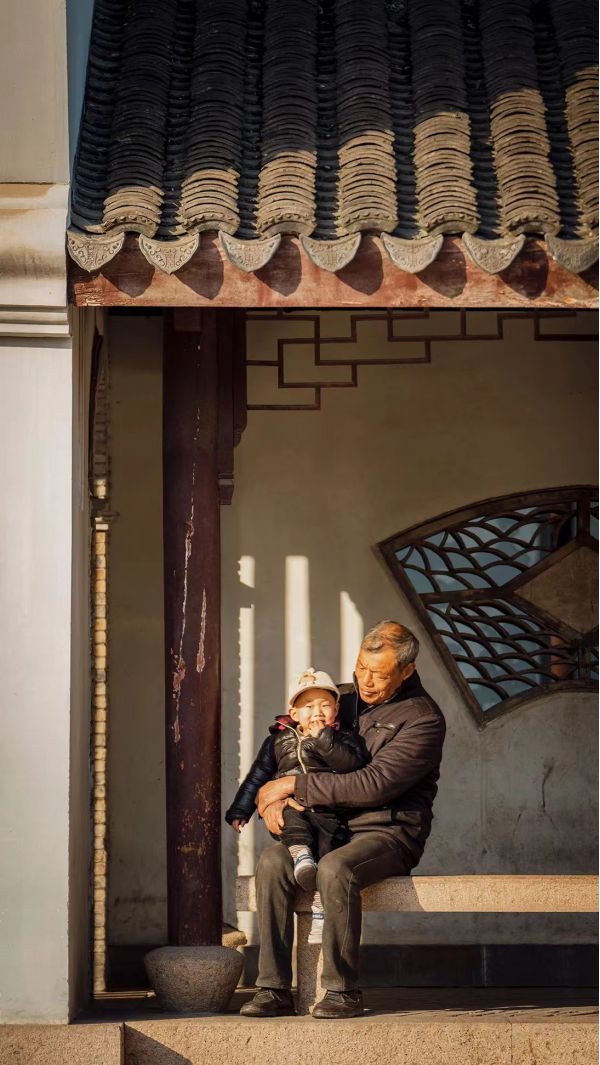 黃昏時(shí)分的爺孫倆,多么希望時(shí)光能夠再慢一些,再溫柔一點(diǎn)。