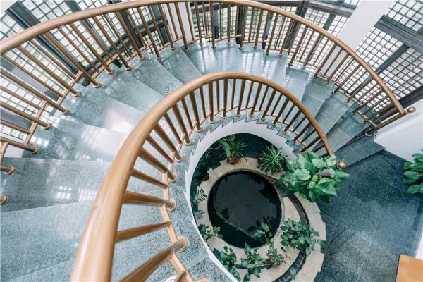 挑高的閣樓內(nèi),一條螺旋樓梯盤旋而上,底部水池綠植密布,公共空間幾本閑書、兩張舊桌椅,隨時迎接著客人的小憩。