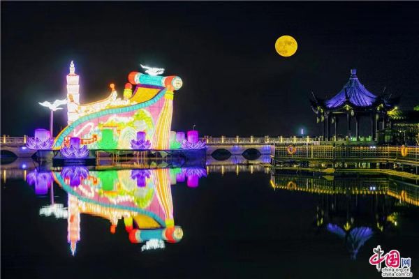 入夜時分,華燈初上,棧道旁泉流涌動,湖中心一場流光溢彩的光影秀,聲畫并茂地描繪著周莊古鎮(zhèn)的水鄉(xiāng)畫卷。