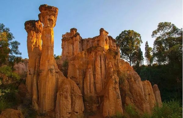 黃聯(lián)土林是遠(yuǎn)古時(shí)期受冰水沉積流動(dòng)和地殼運(yùn)動(dòng)影響,龜裂的沙礫層被地表水長年累月的滲透、沖刷、加深、擴(kuò)大而形成千姿百態(tài)的藝術(shù)奇珍,有“自然雕塑博物館”之稱。