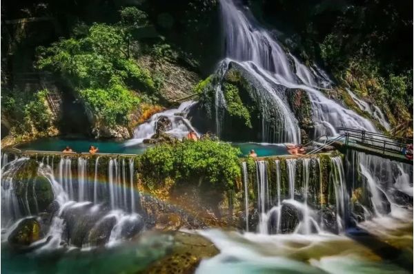 溫泉常有,天然呈瀑布者罕見,位于螺髻山核心景區(qū)的螺髻·九十九里溫泉瀑布卻二者兼?zhèn)?,融溫泉和瀑布于一體,是大自然的神奇造化。