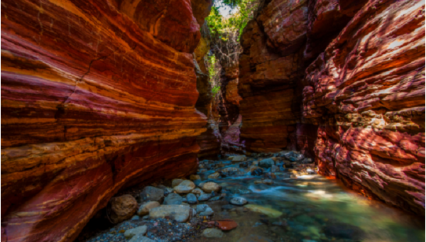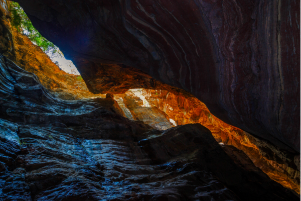 抬頭仰望,紅色的絕壁展現(xiàn)出一幅幅自然而成的山水、人物畫卷,好像經(jīng)過藝術(shù)家精雕細(xì)刻,惟妙惟肖,美麗的畫面讓人遐想不已。