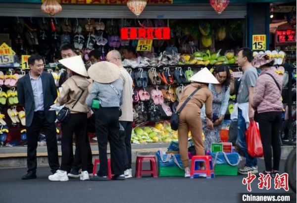 作為邊境“跨國上班族”,范氏小云也是這個行業(yè)的“老手”,過去三年沒有機會到廣西東興,她就在越南芒街的商場幫忙賣衣服。近期恢復(fù)通關(guān)后,范氏小云辭去賣衣服的工作,每天早上趕到東興“淘金”,晚上再返回芒街?!昂觅u的時候一天能賺兩三百元,少的時候只有幾十元,平均一個月可以賺到3000元左右,比我在芒街賣衣服的收入高一些,而且想遲一點來或者早一點回去都行。”范氏小云說。