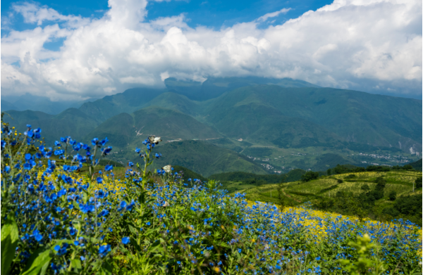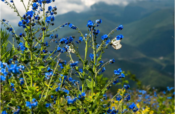 最近,在越西發(fā)現(xiàn)了一處絕美的“仙境”,藍紫色的野花繁星似地密布在,沒過膝蓋的綠草之中成群的蝴蝶在其間翩翩起舞。