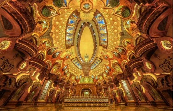 ?佛頂宮;作為佛頂圣境區(qū)的核心之一,佛頂宮坐落于牛首山西峰之處,建基于歷史遺留礦坑之上,總建筑面積約13.6萬平方米,與佛頂塔共同構(gòu)成牛首西峰新景象,與牛首東峰遙相呼應(yīng),再現(xiàn)牛首"雙峰雙闕”并峙的宏盛景。整個佛頂宮以佛祖頂骨舍利供奉溝主題,外部分為大穹頂和小穹頂兩個部分,寓意外目錄供養(yǎng)和內(nèi)供養(yǎng)穹頂形如佛祖袈裟覆蓋在小穹頂之上,象征著佛祖的無量加持;小穹頂下部為蓮花寶座造型,上部為摩尼寶珠造型,上下結(jié)合形成"蓮花托珍寶”的神圣意象。