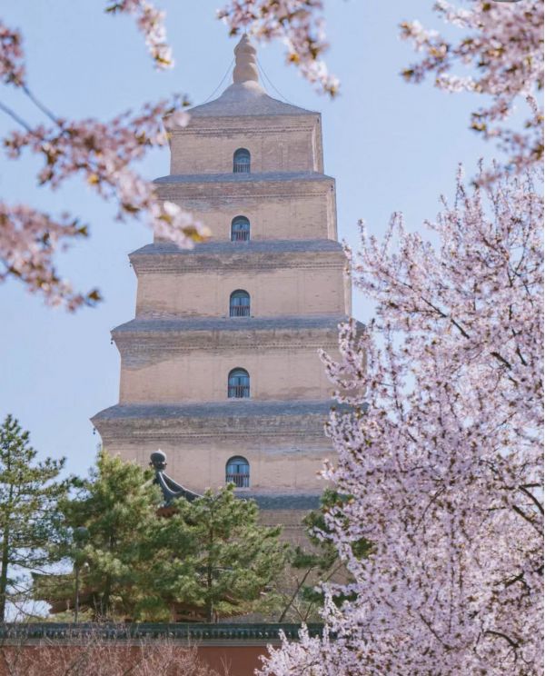 位于和平門外4公里的慈恩寺內(nèi),相傳唐代永徽三年。赴印度取經(jīng)的玄奘法師。奏請在寺內(nèi)建塔,用于存放他自印度帶回來的經(jīng)籍大雁塔初建時只有5層,高60米,是仿照西域佛塔形式建的。后經(jīng)多次修葺至今塔高64米,共7層,底邊各長25米。大雁塔是中國樓閣式磚塔的優(yōu)秀典型。