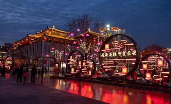 大唐不夜城是《長(zhǎng)安十二時(shí)辰》長(zhǎng)安輿圖里晉昌坊和通濟(jì)坊所在地,整體風(fēng)格為仿唐文化建筑。以盛唐文化為主線,唐文化是中華民族的主流文化,大唐不夜城不僅是唐文化的現(xiàn)代演繹,且是兼有現(xiàn)代文化,世界各國(guó)文化互通、交流的多樣化集合形態(tài)。
