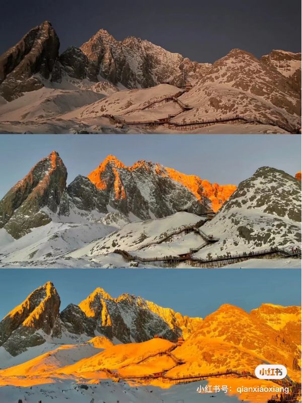 2.當(dāng)2023年的日光再次照射玉龍雪山,當(dāng)你在4680米的高度,與云海一起見(jiàn)證日照金山的奇跡;當(dāng)中國(guó)無(wú)限壯闊的天地,讓你在人海里熱淚盈眶;當(dāng)每一次向上的腳步 在心中蕩起回響,彩云之南,數(shù)永遠(yuǎn)是詩(shī)和遠(yuǎn)方..來(lái)麗江,不去玉龍雪山,是一種遺憾…..玉龍雪山有終年不化的積雪,么皚皚白雪,脈脈山巒;這里的夜晚,云層開(kāi)闊,星河璀璨;在雪山的懷抱中,迎著朝陽(yáng)眺望,伴著星河入眠,這是玉龍雪山獨(dú)有的浪漫。