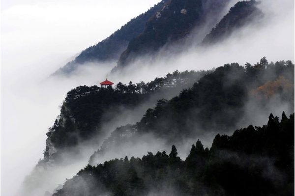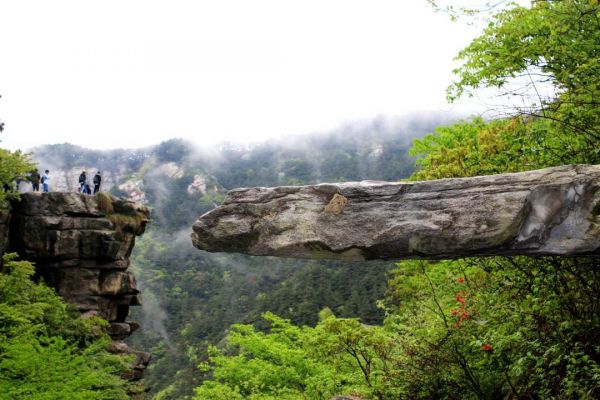 毛主席的七絕詩(shī):“暮色蒼??磩潘?,亂云飛渡仍從容。天生一個(gè)仙人洞,無(wú)限風(fēng)光在險(xiǎn)峰?!彼鑼?xiě)的就是錦繡谷景色。