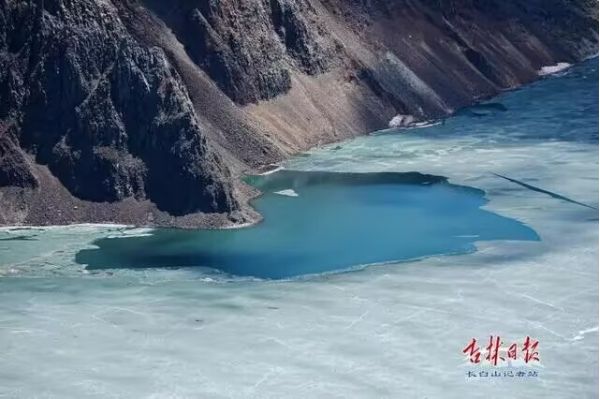 冬季水面結(jié)冰,白雪覆蓋。夏季,冰融化了,湖水變成了藍(lán)色。如今長白山天池水面破冰融化迎來“開冰期”。開冰時節(jié),湛藍(lán)的天池水與潔白的冰凌形成水波流轉(zhuǎn)、冰花碰撞的奇特美景。