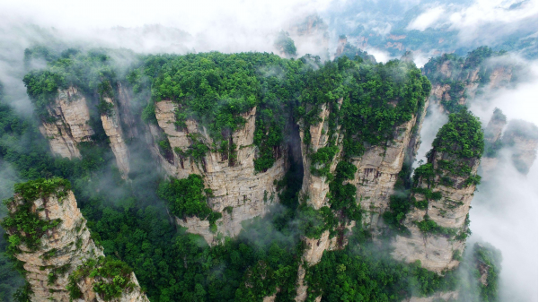 世界罕見(jiàn)的石英砂巖峰林峽谷地貌,由中國(guó)第一個(gè)國(guó)家森林公園——張家界國(guó)家森林公園和天子山自然保護(hù)區(qū)、索溪峪自然保護(hù)區(qū)、楊家界四大景區(qū)組成,風(fēng)景游覽區(qū)面積264.6平方公里,是中國(guó)首批入選的世界自然遺產(chǎn)、世界首批地質(zhì)公園、國(guó)家首批5A級(jí)旅游景區(qū)?!拔淞曛辍碧扉T(mén)山國(guó)家森林公園、
