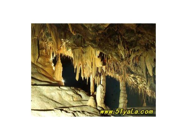 已開發(fā)的洞內(nèi)景觀面積約20公頃,分旱洞和水洞。共四層,長13公里,最高處百余米。屬石灰?guī)r地下河侵蝕型洞穴。兩層水洞與兩層旱洞上下縱橫,形成洞下洞,樓上樓螺旋結(jié)構(gòu),最大洞廳的面積12000平方米,可容納上萬人。洞內(nèi)有一個水庫、兩條陰河、三條地下瀑布、四個水潭、十三個大廳、九十六條游廊。洞內(nèi)流痕、邊石、倒石芽、倒鍋狀窩穴階段發(fā)育良好,鈣質(zhì)石積物呈五顏六色,絢麗多資。穹頂石壁滴水沉淀的石乳、石柱、石筍、石幔、石琴、石花,如水晶玉石,琳瑯滿目,異彩紛呈,美不勝收,有“地下迷宮”之美稱。