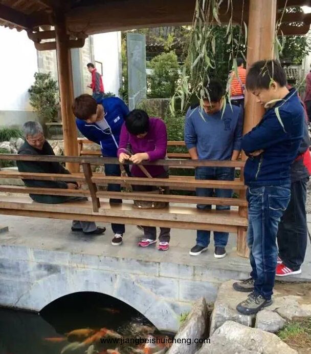 游園駐足,頗有一番‘花港觀魚’之趣。