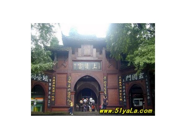 青城主廟——天師洞。相傳東漢末年張道陵曾在此講經(jīng)傳道,其主殿——三皇殿中供有唐朝石刻三皇,殿內(nèi)現(xiàn)存歷代石木碑刻,最著名的有:唐玄宗旨書碑、岳飛手書的諸葛亮前后出師表等。出天師洞,過訪寧橋,便到祖師殿,再向北去,可到朝陽洞,出之則直達(dá)高臺上的上清宮。上清宮,始建于晉代,現(xiàn)存廟宇為清同治年間所建,上有“天下第五名山”、“青城第一峰”等摩山石刻。