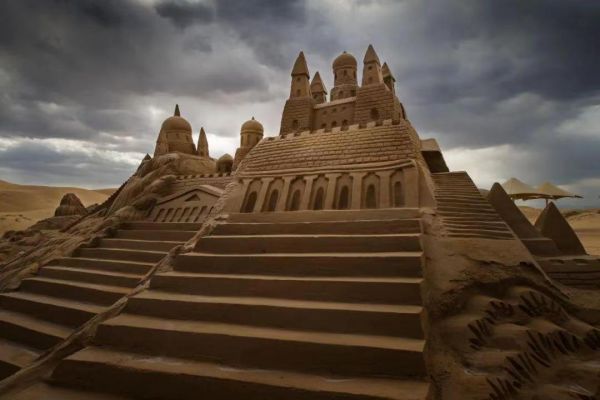 響沙灣沙高110米,坡度45度,呈彎月?tīng)钚纬梢粋€(gè)很大的沙山回音壁。這里沙丘高大,比肩而立,浩海茫茫。順著云梯攀援而上,當(dāng)人們從沙頂向下滑動(dòng),便會(huì)聽(tīng)到猶如飛機(jī)掠空而過(guò)的轟鳴聲;當(dāng)你對(duì)著兩手猛力向中間捧沙時(shí),便會(huì)聽(tīng)到哇哇的蛙鳴聲。在蒙語(yǔ)中,響沙灣被稱(chēng)為“布熱芒哈”,意為“帶喇叭的沙丘”。響沙灣因而得名。