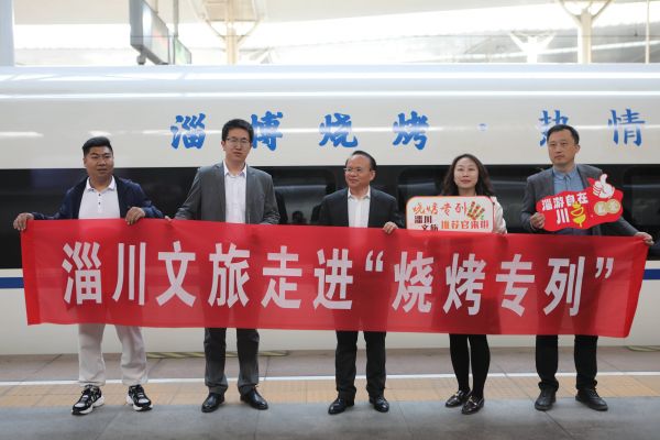 4月8日,燒烤專列G9321次列車從濟(jì)南西開往淄博,淄博市文化和旅游局局長宋愛香帶領(lǐng)10個區(qū)縣、功能區(qū)文旅局長及33家熱門景區(qū)負(fù)責(zé)人組成的淄博文旅團(tuán)登上燒烤專列,向乘客推介淄博市文旅資源,發(fā)送旅游紀(jì)念品、優(yōu)惠券等,受到游客的熱烈歡迎。淄博齊山景區(qū)市場營銷部負(fù)責(zé)人許俊杰在這趟列車上,感受到了“大學(xué)生組團(tuán)”到淄博燒烤的熱情和善意。在高鐵站、網(wǎng)紅店牧羊村燒烤等地,大學(xué)生們雙手接過他遞過去的宣傳折頁,都跟他說“謝謝”。許俊杰說:“我作為淄博旅游從業(yè)者,內(nèi)心非常感動,現(xiàn)在的年輕人素質(zhì)都很高。以前活動發(fā)放宣傳折頁的時候,很多人都是看了就扔掉或者直接拒絕,但是這一次我看到幾乎所有年輕人都認(rèn)真看上面的內(nèi)容,還主動向我咨詢有關(guān)淄博景區(qū)情況?!?