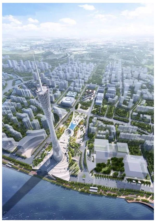 廣州塔廣場(chǎng)的二層未來(lái)將與廣州塔二層平臺(tái)連通,為市民和游客提供人與自然互動(dòng)的戶(hù)外城市客廳,成為復(fù)合功能的戶(hù)外藝術(shù)廣場(chǎng)。廣場(chǎng)以“珠水漣漪”為設(shè)計(jì)理念,提取廣州塔“小蠻腰”曲線(xiàn)造型及水波線(xiàn)型元素,形成廣場(chǎng)場(chǎng)地構(gòu)成肌理與造型。
