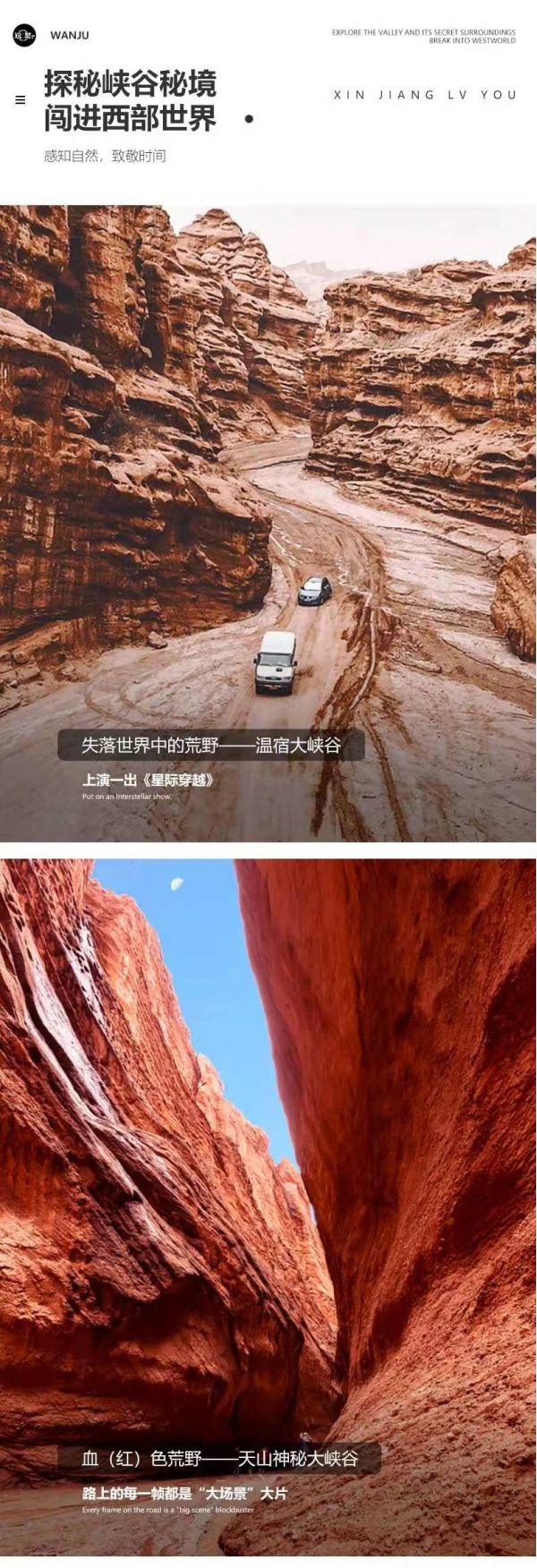 今天從庫(kù)爾勒出發(fā)前往獨(dú)庫(kù)公路旁的【天山神秘大峽谷】,這里有大片赤色山崖峰林,就像一個(gè)外星球無(wú)人之地,獨(dú)庫(kù)公路南段最驚艷的景觀(guān)。大自然億萬(wàn)年的風(fēng)刻雨蝕才得以造就了這條紅褐色大峽谷,溝中有谷 谷中有溝 暗紅色的山體千姿百態(tài) 相當(dāng)有視覺(jué)沖擊力。在峽谷的側(cè)壁上可以看到明顯的褶曲和斷裂線(xiàn),朝夕的光影變化最為夢(mèng)幻,是中國(guó)十大最美峽谷之一,被譽(yù)為“中國(guó)版羚羊古”。天山神秘大峽谷獨(dú)有的野性、荒涼氣質(zhì),讓這里非常適合拍攝“大場(chǎng)景”大片。