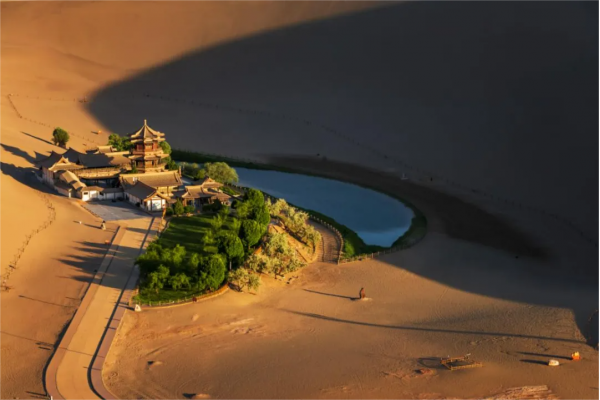 之后我們將前往鳴沙山,【鳴沙山月牙泉】歷來以“沙漠奇觀”著稱于世,是敦煌的名片之一,沙漠與湖泊共生,月牙泉也被稱為沙漠第一泉。大家可以選擇徒步或者騎駱駝上山,從山頂鳥瞰,西域大漠景色讓人心曠神怡,黃沙萬里長,遠(yuǎn)處的駝隊(duì),正悠悠而來;在這里靜待日出東山,大家就可以觀賞到一場壯觀的日出盛宴,當(dāng)那火紅一點(diǎn)一點(diǎn)地從深淵中奮力躍出,直到這輪旭日沖破云層,溫柔卻有力量的晨曦落在鳴沙山起伏的丘陵上,直到染得天地同色,這份似乎要點(diǎn)燃整個(gè)西域大漠的壯闊絲毫不遜于“大漠孤煙直,長河落日圓”。