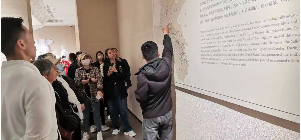 首先,講解組的各位成員首先來到的是中國(guó)運(yùn)河文化博物館,跟隨旅行團(tuán)一起傾聽運(yùn)河博物館的文化,并從中學(xué)習(xí)講解員的語言、動(dòng)作、手勢(shì)等。講解員解說時(shí)擁有強(qiáng)大的語言駕馭能力,能夠?qū)⒊橄蟮膬?nèi)容具體化,通過一個(gè)個(gè)的動(dòng)人的運(yùn)河故事,引起我們的興趣。