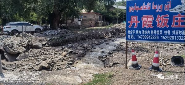 現(xiàn)在已經(jīng)2:30了,大家還沒(méi)有吃飯,整個(gè)路上,人家也很少,幾乎沒(méi)有看到任何村莊,路邊現(xiàn)在有一個(gè)丹霞飯店,沒(méi)辦法,在這吃飯吧,這一塊植被應(yīng)該說(shuō)還不錯(cuò),雖然極簡(jiǎn),小橋流水倒有點(diǎn)情調(diào)。