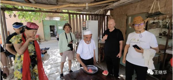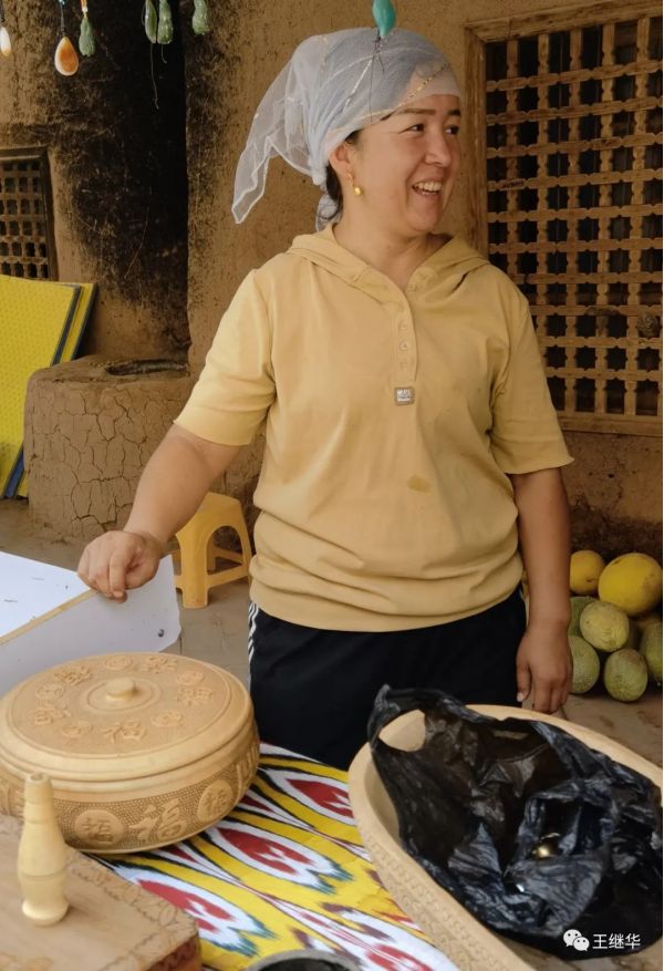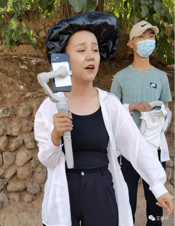 繼續(xù)前行看到一個搞抖音直播的維族姑娘。給我們說自己叫瑪依熱,在山東高校免費上過大學。畢業(yè)就回到了家鄉(xiāng)。搞了個網上直播帶貨,買哈密瓜,生意非常好。