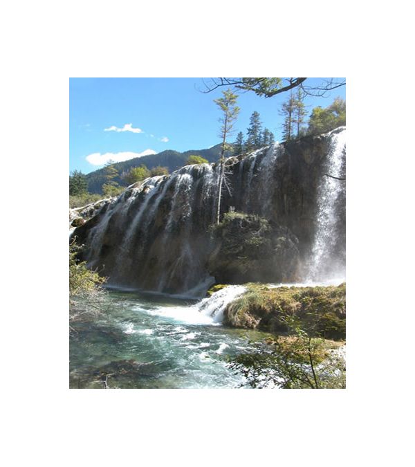 樹正瀑布由首尾相接的眾多梯湖的飛瀑,水大勢猛,勾連迥環(huán),瀑布下瀉深溝,猶如千軍萬馬擂鼓搖旌,吼聲如雷。梯湖堤埂之上,聳立著一株株、一叢叢高原特有的各種灌木,扎根于水底,傲立在激流,常年經(jīng)受流水的沖擊而不倒伏,不爛根,風姿綽約,形成特殊的植物群落和世間罕見的自然奇觀:碧水穿過叢林,漫過堤埂,跌落層層瀑布,恍若碎玉飛花!更有河灘上的叢叢沙棘沙柳,其主根深扎在碳酸巖縫里,卻還有許多一米多長的紅色須根,流水將它們梳理在一起,恰似一大把紅馬尾;紅須根隨波擺動,上下浮沉,看去活象透明碧玉中流動的紅瑪瑙……抬望眼,仰天觀云,側耳聽風,更有那岸邊大片大片粉紅色的蕎麥花,高低錯落的藏族民居,還有那早出晚歸的牛群羊群,裊裊炊煙,聲聲犬吠……樹正瀑布的一切,好象是幽深的,寧靜的,世外桃園的,卻又是生機盎然,出神入化!離開珍珠灘,沿著環(huán)山公路下行,有一片寬闊無比的山谷。山谷空曠,草木叢生,中間一縷清泉婉蜒滑過,充向下游的鏡海。小河旁有幾戶民居,如世外桃源。山谷兩側是雄偉挺拔的山峰,秋天來臨時,秋色染林,仿佛有一枝神廳的畫筆,肆 意將絳紅、桃紅、暗紫、墨綠、碧綠、鵝黃涂抹在山上。