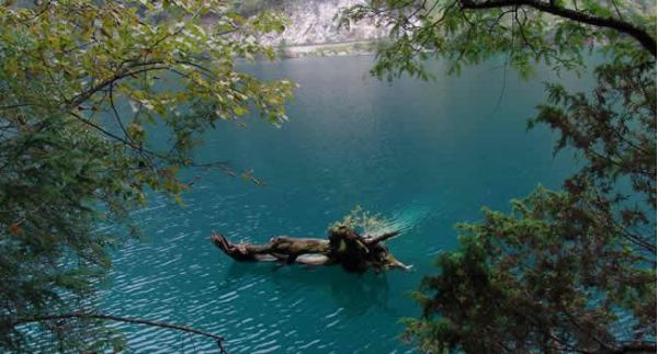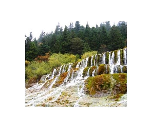 “雙龍海”在蘆葦海之上,火花海瀑布群之下,透過晶瑩的湖水,可以看到海中有兩條帶狀的生物鈣華礁堤隱隱潛伏于海底,活像兩條蛟龍藏于海中,蠕蠕欲動,顧盼生風,隨時要騰空而起,飛入蒼穹。 也許是蛟龍皈依、海中太平的緣故,這里時有不少漂亮的天鵝和多情的鴛鴦小住。如果有幸,在這里可以欣賞野鴨群游和天鵝飛舞的景象,使你備增游興。樹正群海由二、三十個大小海子呈梯田狀群集而成,前后連綿數(shù)里,上下高差近百米。柏、松、杉等翠綠樹木密布于湖泊周圍。湖水自上游翻堤而過,在樹叢中穿流,跌落在下一層的海面形成疊瀑,激起銀色的浪花,喧鬧著直奔下游而去。這一道道的疊瀑與激流串起樹正海中的各個海子,動靜相隔。群海不僅高低層次分明,色彩也是層次分明,綠樹綠得青翠,藍海藍得濃稠,疊瀑與水花白得輕盈,尤其是那綠中套藍的色彩最為動人。