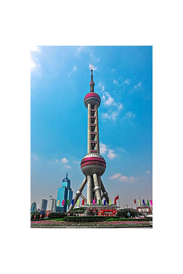 東方明珠廣播電視塔,簡稱“東方明珠”,位于上海市浦東新區(qū)陸家嘴世紀(jì)大道1號,地處黃浦江畔,背擁陸家嘴地區(qū)現(xiàn)代化建筑樓群,與隔江的外灘萬國建筑博覽群交相輝映,1991年7月30日動工建造,1994年10月1日建成投入使用,是集都市觀光、時(shí)尚餐飲、購物娛樂、歷史陳列、浦江游覽、會展演出、廣播電視發(fā)射等多功能于一體的上海市標(biāo)志性建筑之一。截至2019年,為亞洲第六高塔、世界第九高塔。東方明珠廣播電視塔主體為多筒結(jié)構(gòu),由3根斜撐、3根立柱及廣場、塔座、下球體、5個(gè)小球體、上球體、太空艙、發(fā)射天線桅桿等構(gòu)成,總高468米,總建筑面積達(dá)10萬平方米。