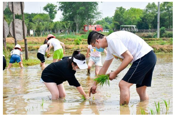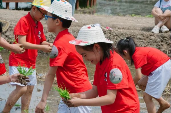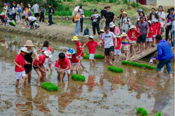 此時的長安唐村,不少家長帶著孩子,挽起褲腿踩進泥土中,在園區(qū)工作人員的帶領(lǐng)下,親手栽種下一棵棵秧苗,參與作物的自然成長?!?strong>很多游客都很珍惜插苗體驗的親子時光,對他們來說這種與自然親密接觸的機會很珍貴?!眻@區(qū)一名工作人員說。
