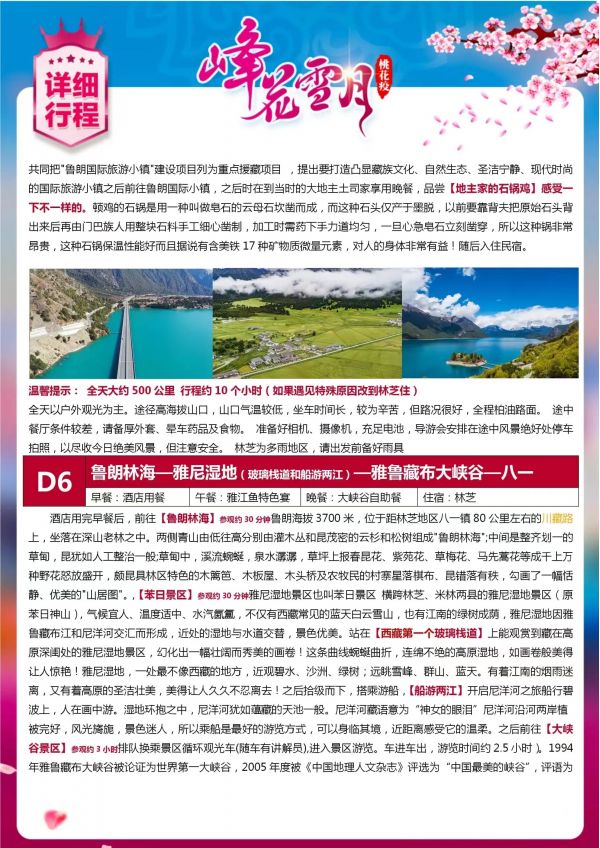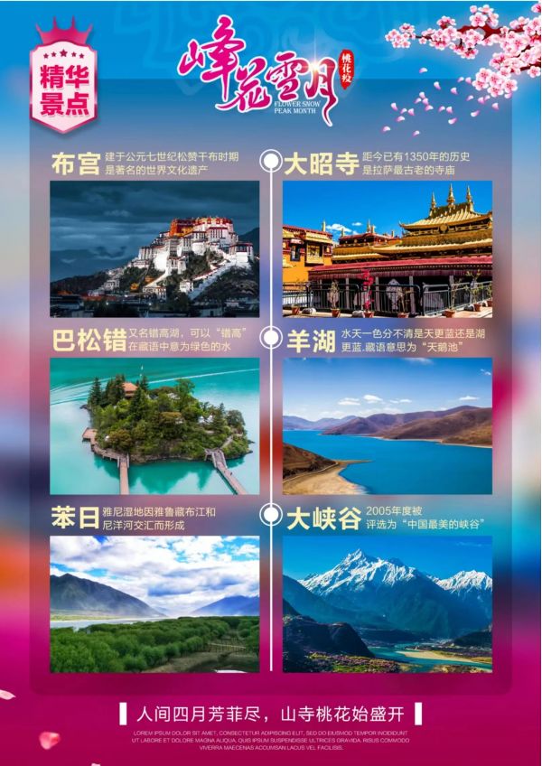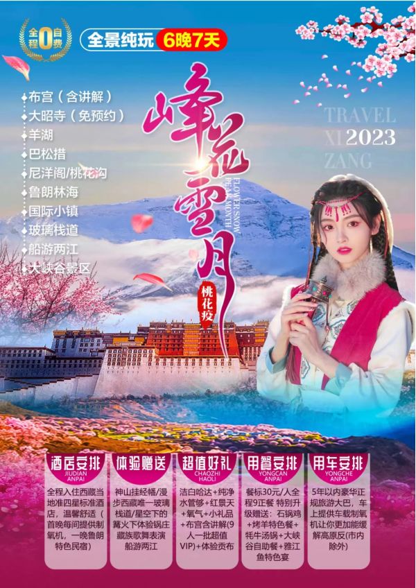 西藏臥去飛回10游 聊城發(fā)團 純玩 無購物 布宮 大昭寺 羊湖 巴松措 尼洋閣 魯朗林海 國際小鎮(zhèn) 玻璃棧道 船游兩江 大峽谷景區(qū) ...... 發(fā)團日期 20230601-20230630 價格 5580 報名電話 0635 8681234