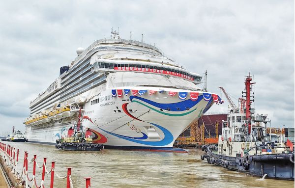 白色涂裝、流線型船體、身系“敦煌飛天彩帶”的首艘國(guó)產(chǎn)大型郵輪,取名為“愛(ài)達(dá)·魔都號(hào)”,寓意“從上海出發(fā),愛(ài)達(dá)世界”。船上融匯多元文化,通過(guò)“一船好戲”,為游客打造高端郵輪度假體驗(yàn)。比如,與中免集團(tuán)強(qiáng)強(qiáng)聯(lián)手建造海上大型免稅店、攜手上海電信創(chuàng)建有5G信號(hào)的郵輪、依托清華美院的資源和優(yōu)勢(shì)打造海上“絲綢之路”藝術(shù)空間、與喜劇品牌開(kāi)心麻花推出海上專場(chǎng)演出等。