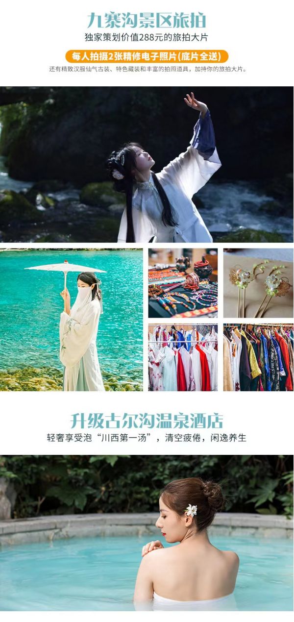 然后我們驅(qū)車前往有“水晶之王”美譽(yù)的九寨溝,傍晚時(shí)分我們抵達(dá)九寨溝溝口。大家可以自行組隊(duì)選擇前去觀看《九寨千古情》,是什么樣的地生活著什么樣的人才會(huì)造就這么綺麗的山水和故事呢?