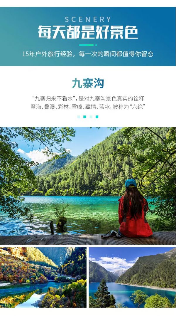 4、九寨溝景區(qū)實(shí)行分區(qū)域開放,開放區(qū)域?yàn)闇峡诮?jīng)諾日朗瀑布至長(zhǎng)海,扎如溝的扎如寺及日則溝的鏡海;其中,長(zhǎng)海、五彩池、鏡海、諾日朗瀑布、樹正群海、雙龍海瀑布、扎如寺等景觀原則上為步行游覽區(qū),具體游覽方式請(qǐng)聽從隨車講解員安排。