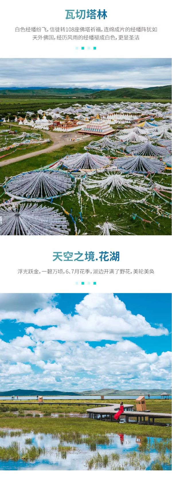 隨后經(jīng)過瓦切塔林,瓦切塔林是為了紀(jì)念第十世班禪大師頌經(jīng)祈福之地,成排的白塔、連綿的經(jīng)幡,蔚為壯觀,以此為背景用相機(jī)記錄下自己虔誠(chéng)朝拜的樣子吧。