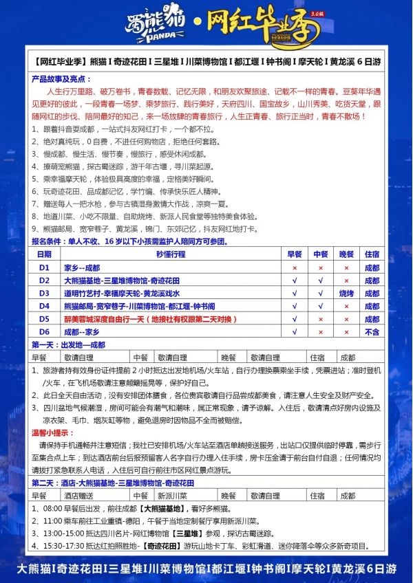 成都-蜀熊貓雙飛6日游