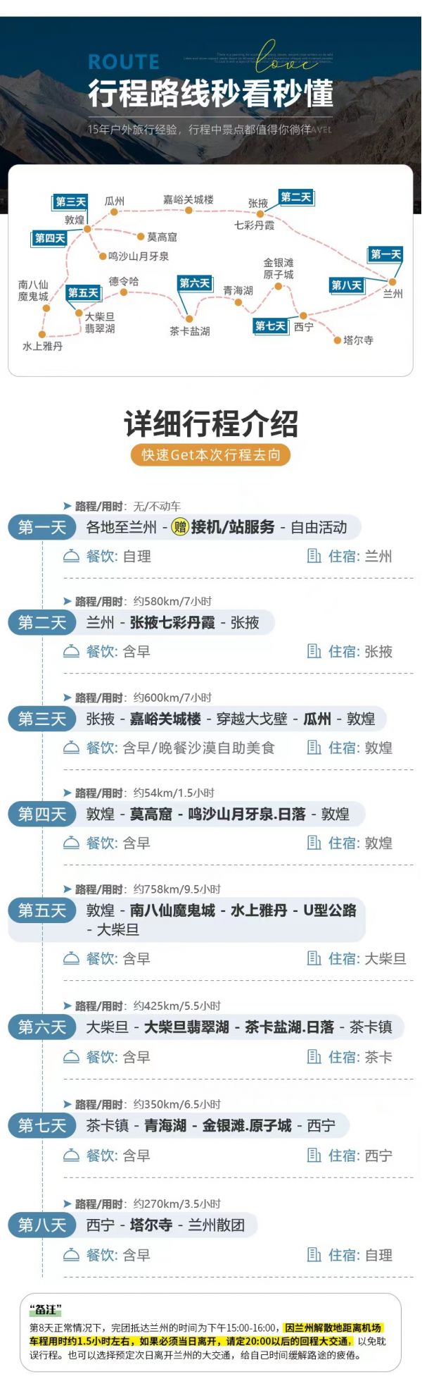 請(qǐng)對(duì)應(yīng)使用我方玩聚絲綢之路8日行程,因使用其它行程造成的投訴,責(zé)任自負(fù);請(qǐng)仔細(xì)閱讀以上行程文檔,同意并保證遵守我方安排,以免為您帶來(lái)不必要的麻煩;如產(chǎn)生合同糾紛或人身意外事故,按《中華人民共和國(guó)合同法》、《道路交通法》、《保險(xiǎn)賠償條例》裁定;本行程作為旅游合同附頁(yè)與旅游合同同等法律效力。