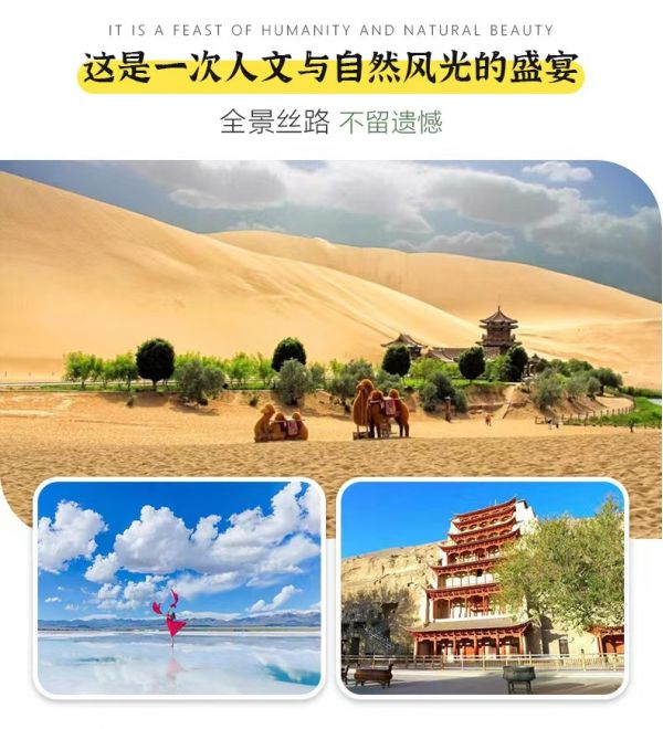 1. 敦煌莫高窟景區(qū)自2015年6月起實(shí)行數(shù)字展示中心數(shù)字洞窟展示和莫高窟實(shí)體洞窟體驗(yàn)的預(yù)約參觀模式,每天限6000人參觀,團(tuán)隊(duì)參觀時(shí)間嚴(yán)格按照莫高窟預(yù)約場(chǎng)次進(jìn)行,因此,敦煌段景點(diǎn)參觀順序會(huì)根據(jù)莫高窟時(shí)間進(jìn)行調(diào)整或同團(tuán)客人安排不同時(shí)間游覽,敬請(qǐng)配合。
