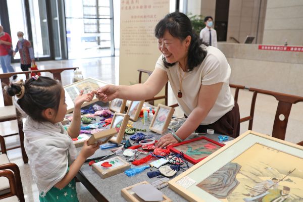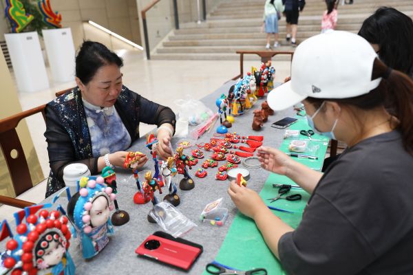 在平遙推光漆器髹飾技藝體驗(yàn)區(qū),活潑可愛(ài)的貓咪、亭亭玉立的荷花,活靈活現(xiàn)地展現(xiàn)在漆器上。在平遙木雕神像傳統(tǒng)技藝體驗(yàn)區(qū),孩子們細(xì)細(xì)雕刻著手中的作品,沉浸在創(chuàng)作的樂(lè)趣中。在晉中面塑技藝體驗(yàn)區(qū),不少觀眾親手制作出惟妙惟肖的專屬面塑人物。在平遙傳統(tǒng)(白)銅器制作技藝體驗(yàn)區(qū),在陣陣“叮叮當(dāng)當(dāng)”的金屬敲擊聲中,一件件亮閃閃的生肖掛件制作完成。在堆繡傳統(tǒng)制作技藝體驗(yàn)區(qū),精美細(xì)膩的堆繡也吸引了不少人圍觀,大家紛紛向傳承人詢問(wèn)剪裁和針?lè)ǖ姆椒记伞?